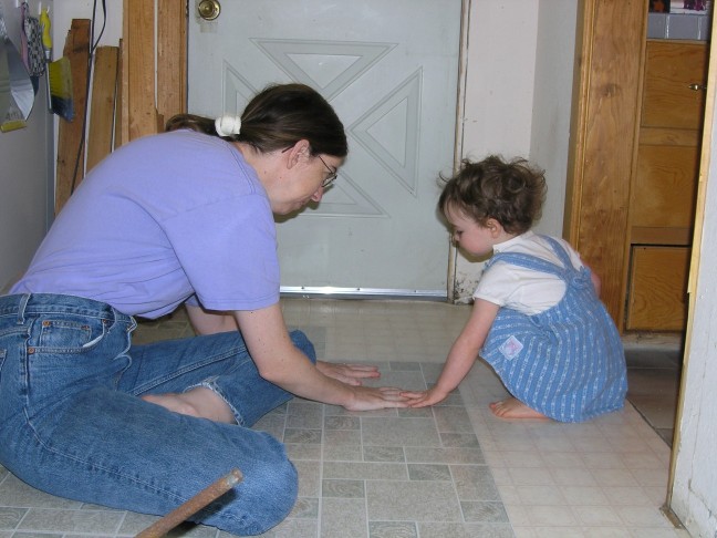 Helping Mom put down a New Floor