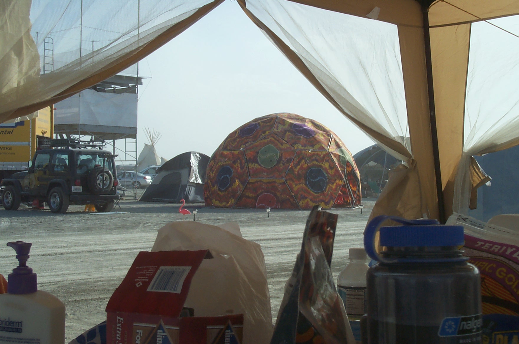 Dome across the street with psychedelic sheets from Haight Ashbury
