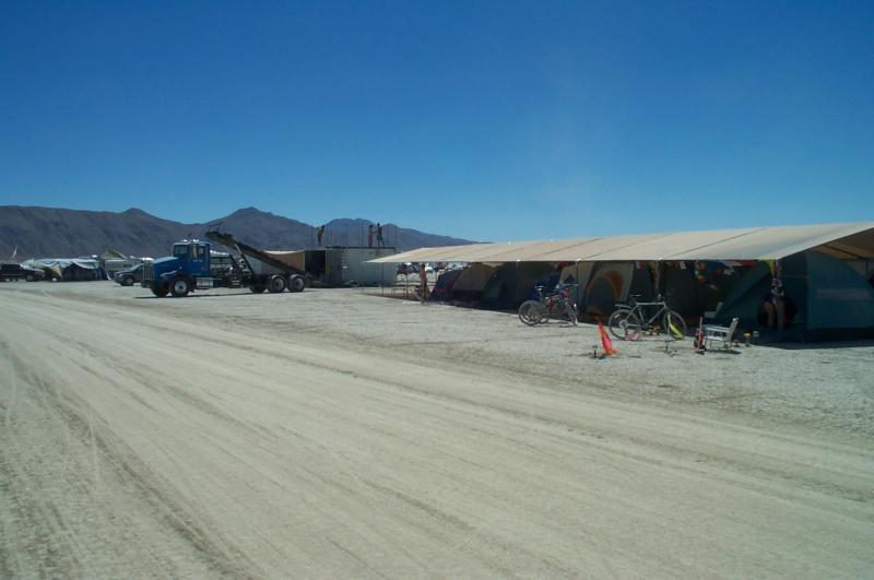 "Koke's Camp", across the street, had two cargo containers, a big rig, and space for (I think) 18 tents under that super-tight canopy. That canopy did