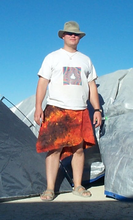 My ghetto skirt made from remnants of the fabric I tried to make into pants. I wrote the program that generated the fractal on my shirt.