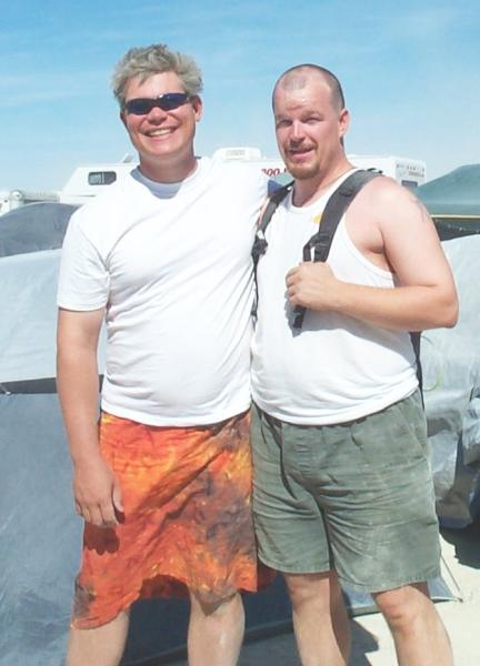 Brad and Jack, old college buddies. You can tell my tie-die skirt is getting more ragged as the days have passed. And I now have extreme playa hair.