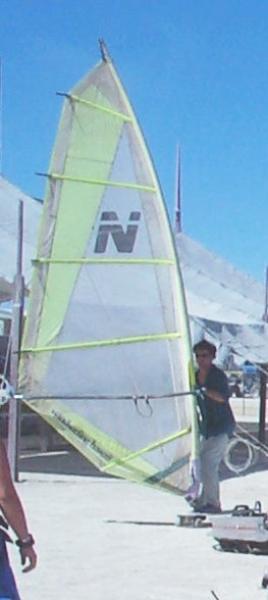 This fellow had a sail attached to his skateboard, but wasn't getting quite enough wind.