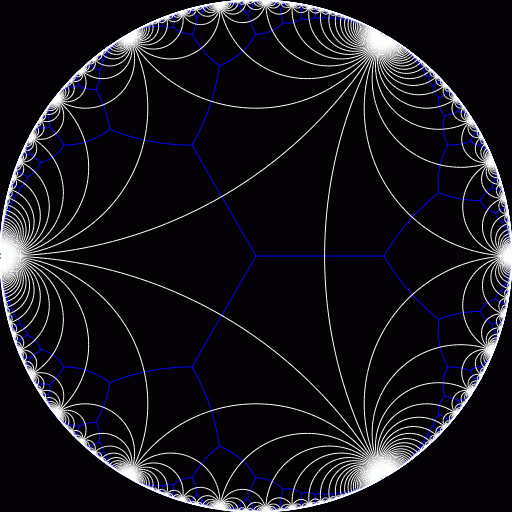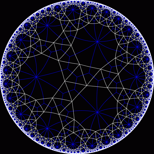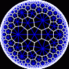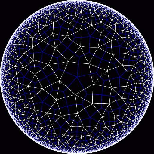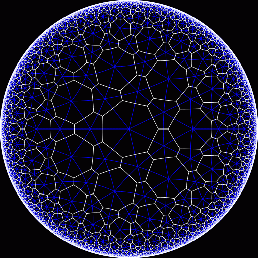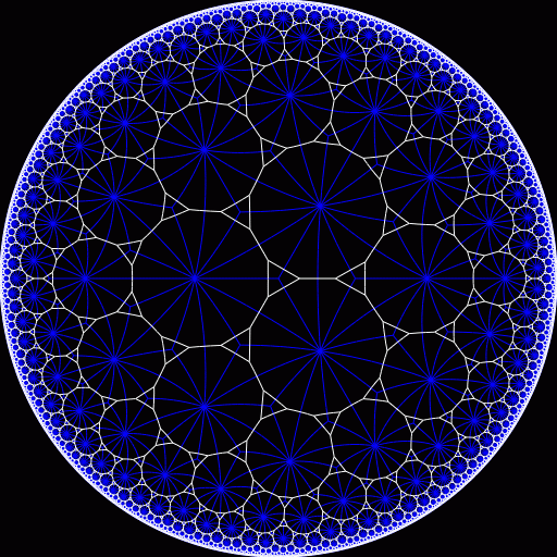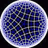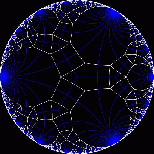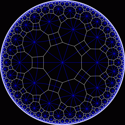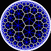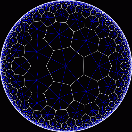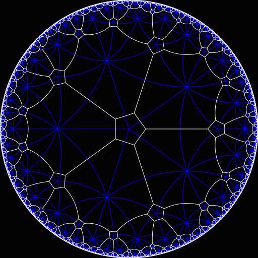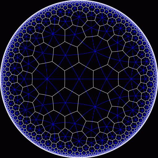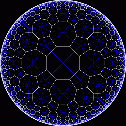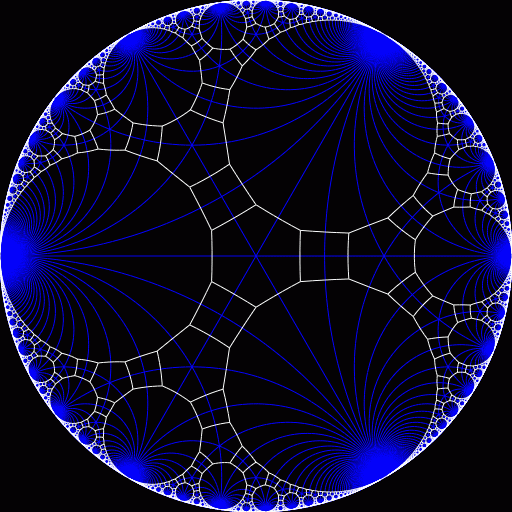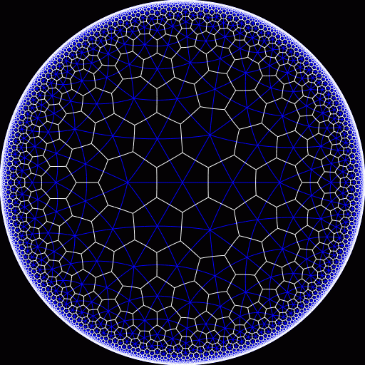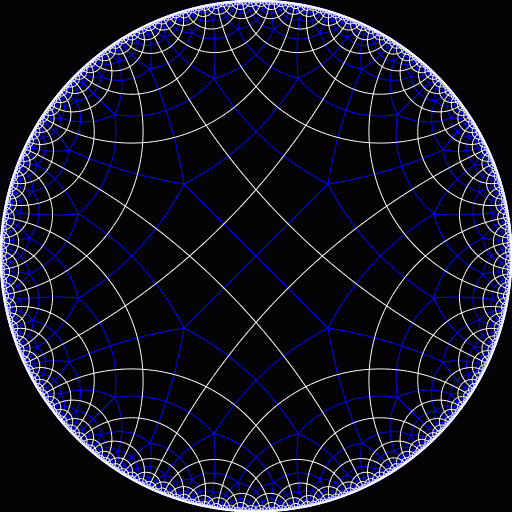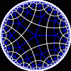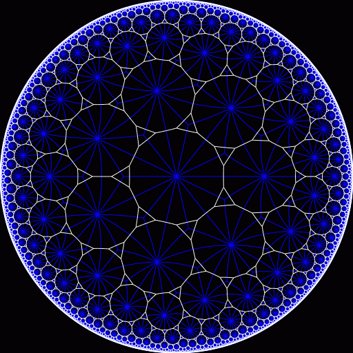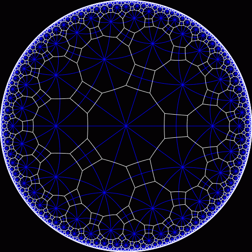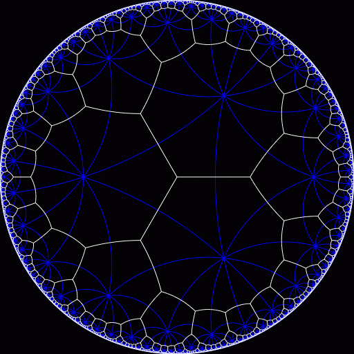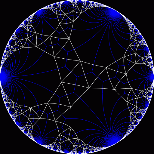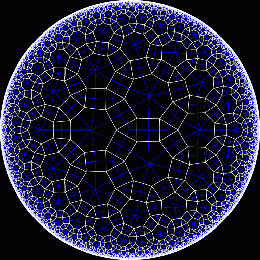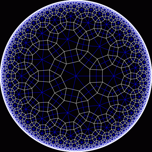 Each tesselation is represented by a Schlafli symbol of the form {p,q}, which means that q regular p-gons surround each vertex. There exists a hyperbolic tesselation {p,q} for every p,q such that (p-2)*(q-2) > 4.