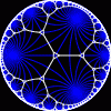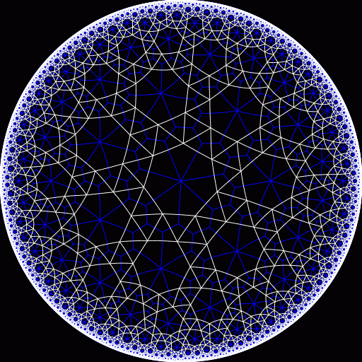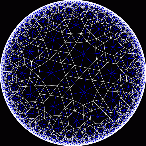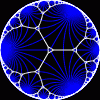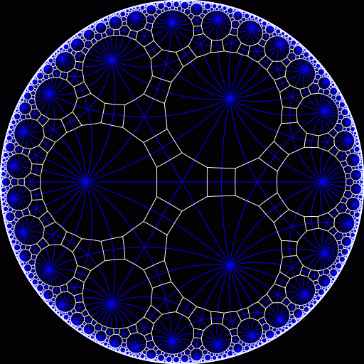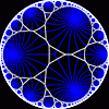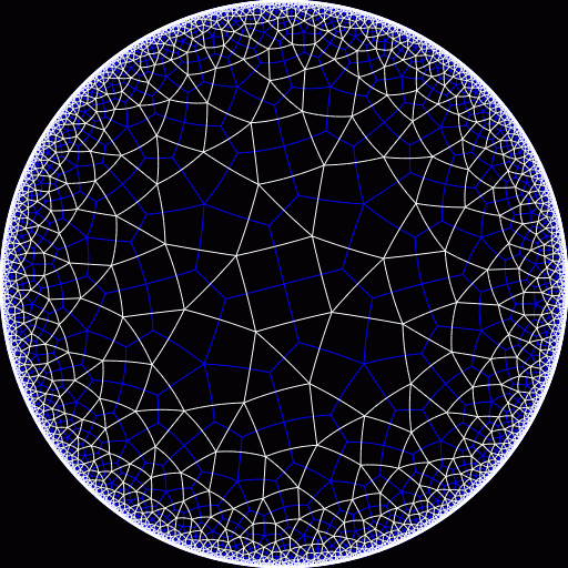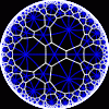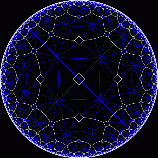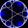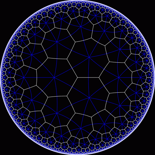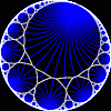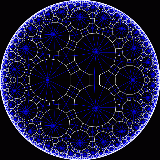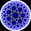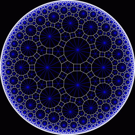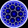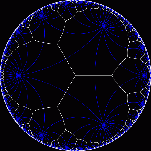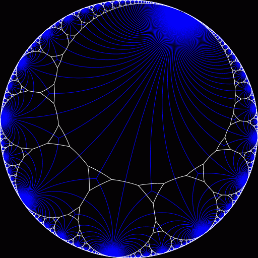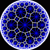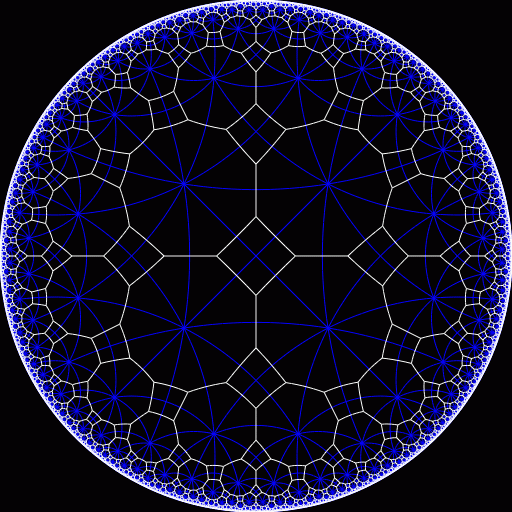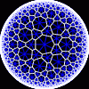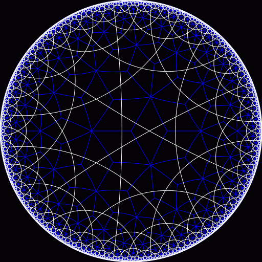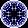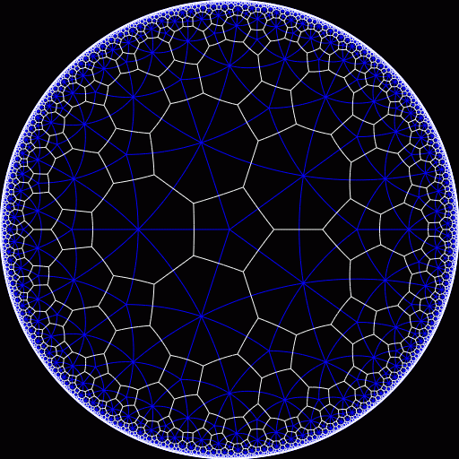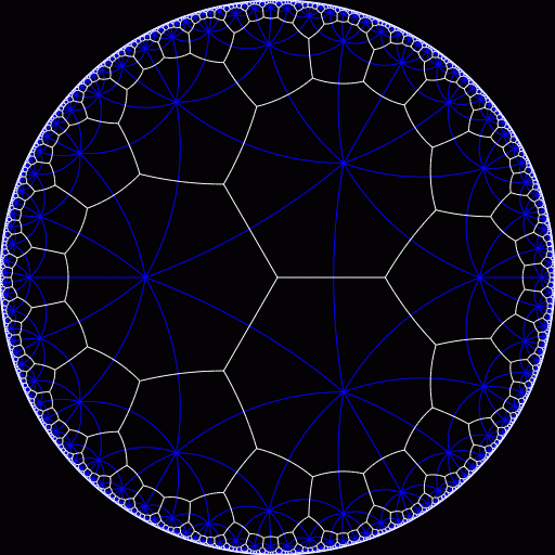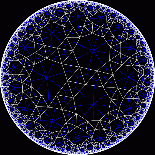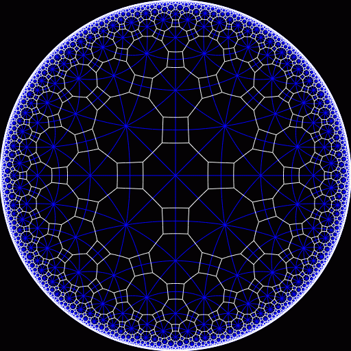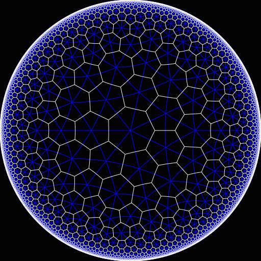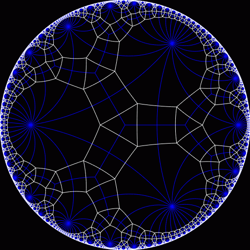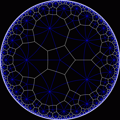 Each tesselation is represented by a Schlafli symbol of the form {p,q}, which means that q regular p-gons surround each vertex. There exists a hyperbolic tesselation {p,q} for every p,q such that (p-2)*(q-2) > 4.