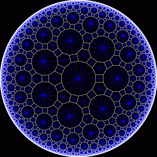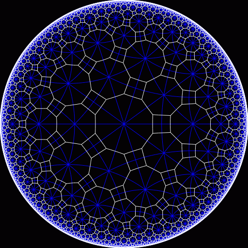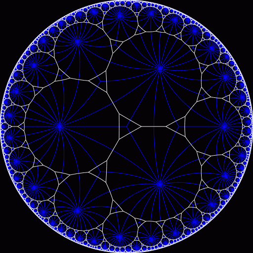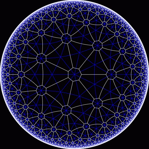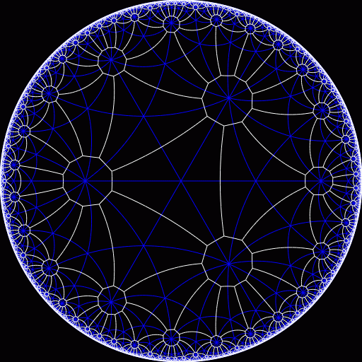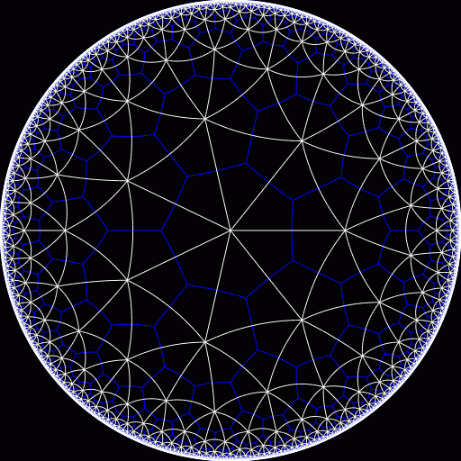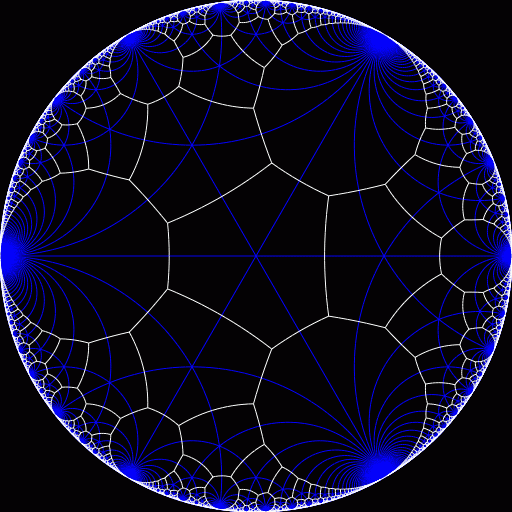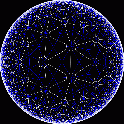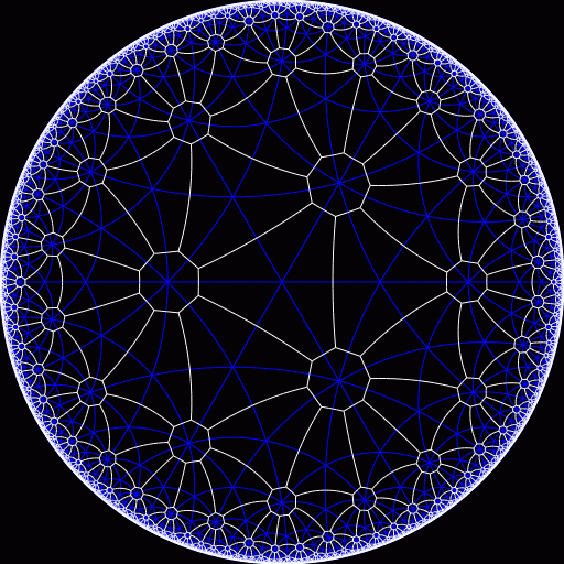 The Omnitruncated {3,7} is the "most nearly planar" of all semiregular or regular hyperbolic tesselations, in the sense that if you tried to construct it from Euclidean planar polygons, the sum of the angles at each vertex would be as small as possible while exceeding 360 degrees.